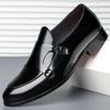 Men's Business Casual Double Buckle Pointed Toe Leather Monk Shoes - Shiny English Style Formal Footwear.