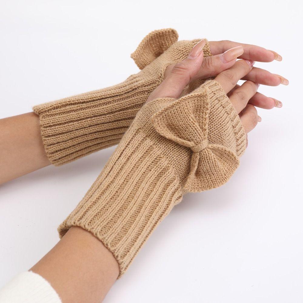 Fashion Accessory Thick Warm Bowknot Knitted Gloves Elastic Soft Fingerless Mittens Keep Warm Half Finger Gloves Winter