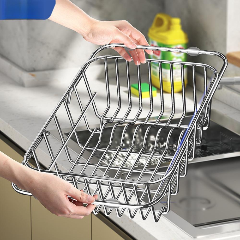 Telescopic Sink Drain Basket Stainless Steel Adjustable Kitchen Storage Organizer Space Saving Multi-functional Dishwashing Rack