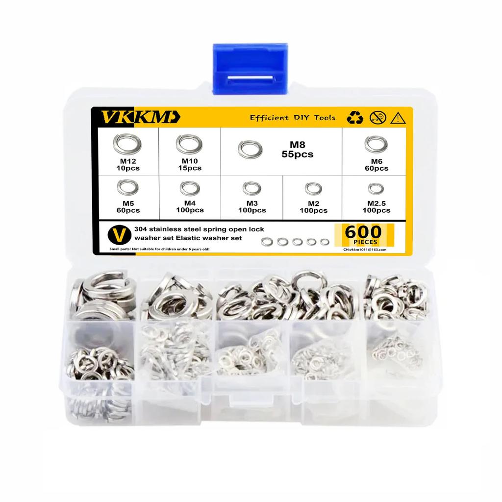 VKKM600Pc Stainless Steel Spring Locking Washer, M2-M12 Hybrid Set, Suitable for Industrial and Agricultural Machinery Equipment