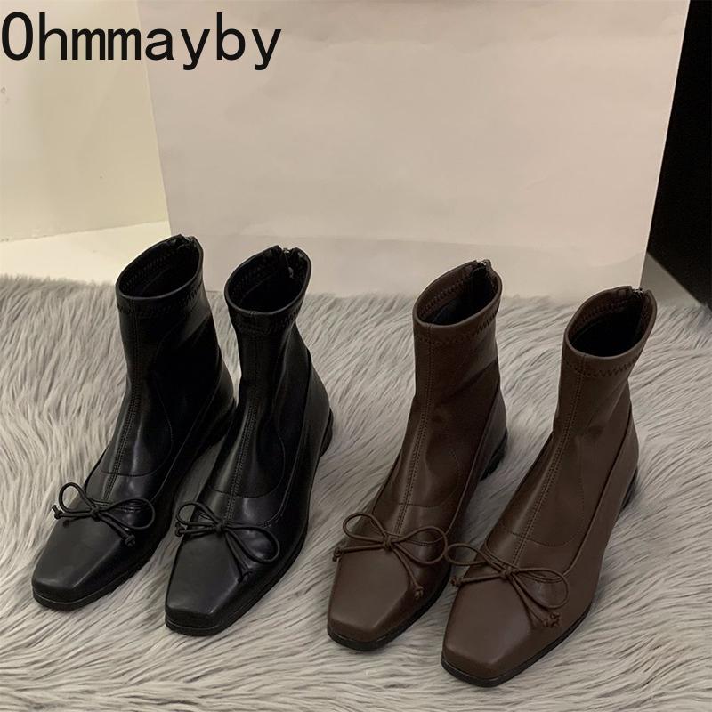 Square Toe Woman Thick Heel Ankle Boots Fashion Butterfly-knot Shoes Autumn Winter Femmes Mordern Short Botines De Mujer