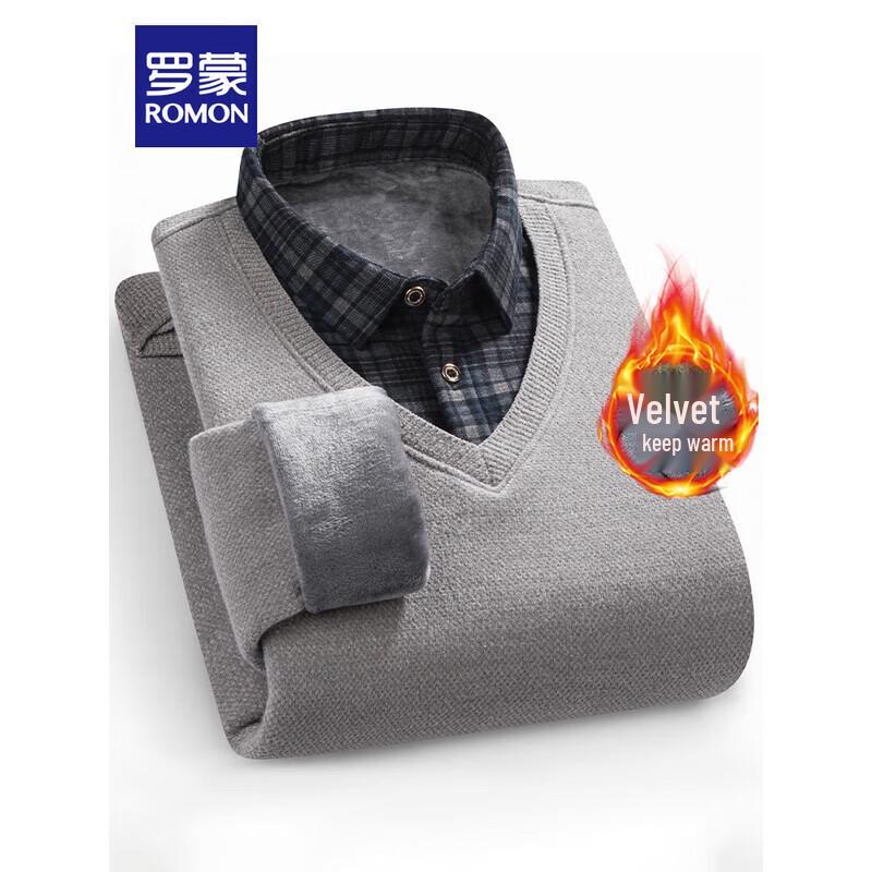 ROMON Men's Faux Two-Piece Elastic Slim Knit Shirt