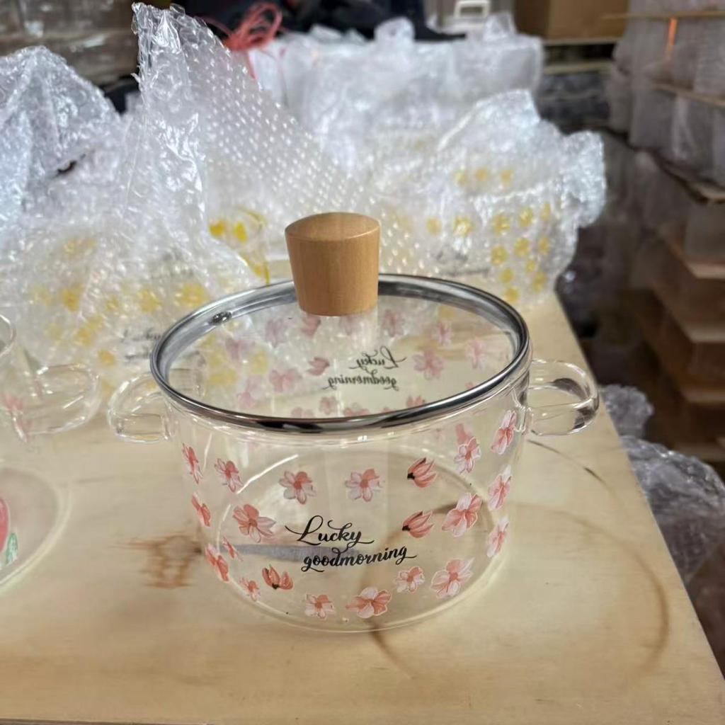 Cute Bear Transparent Borosilicate Glass Soup & Milk Pot, Heat-Resistant for Instant Noodles