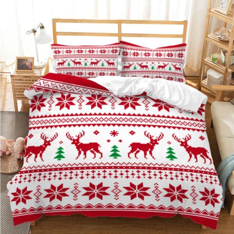 3D Digital Printing Christmas Three-Piece Set, Holiday Decoration Bedding Set