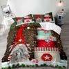 Red Christmas Hat Elk Three-Piece Quilt Cover 3D Digital Printing Bedding Set Bed Cover