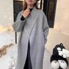 Korean High-Collar Gentle Gray Loose-Fit Wool Coat for Women - Autumn/Winter Fashion