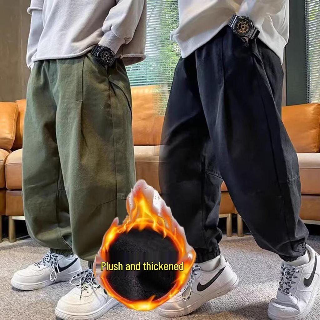 These fleece-lined sweatpants are perfect for boys seeking comfort and style throughout the cooler seasons. Crafted from high-quality polyester, these thickened casual sports pants are designed to provide warmth and durability. Ideal for spring, autumn, and winter wear, they offer a relaxed fit that allows for ease of movement, making them perfect for both active play and cozy lounging.