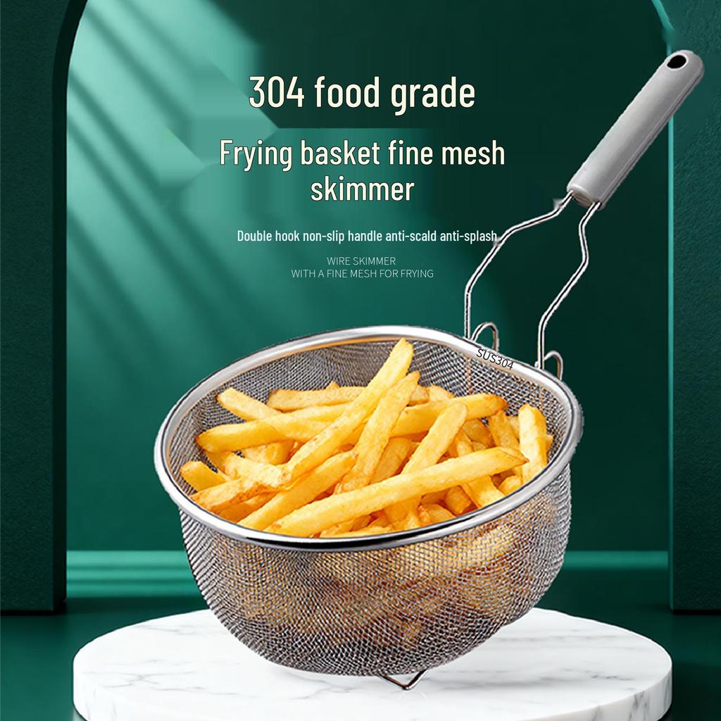 304 Stainless Steel Skimmer Fine Mesh Fryer Basket Oil Strainer Noodle Colander