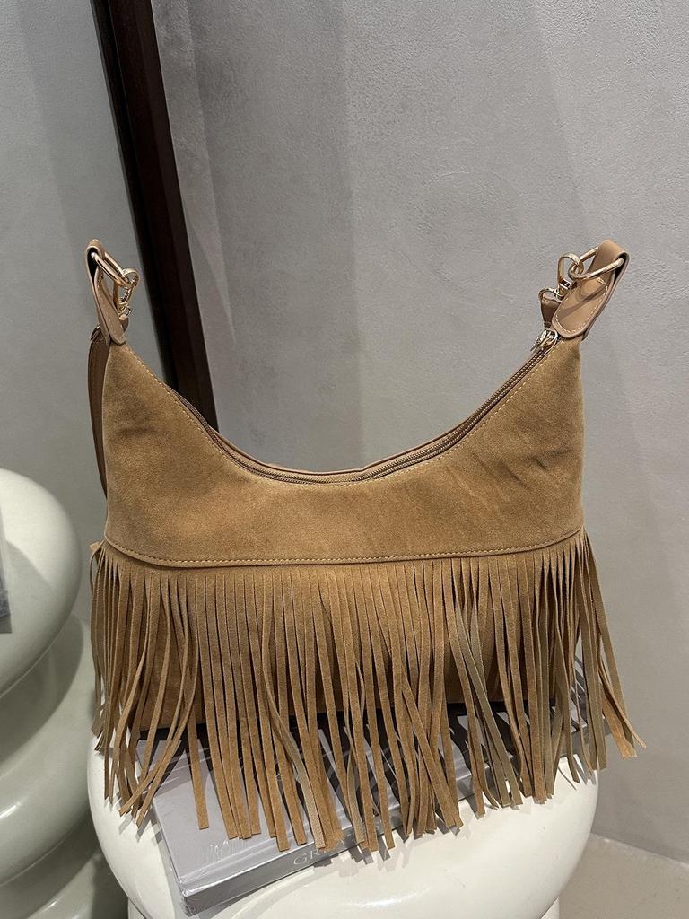 Women's Vintage Suede Tassel Crossbody Bag - Retro Frosted Shoulder Accessory for Autumn/Winter