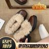 Black Thick-heeled Small Leather Shoes for Women's 2025 New Autumn and Winter Plush Warm Fluffy Shoes Mary Jane Pedal High Heels