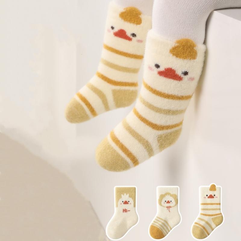 3pairs/set Baby Coral Velvet Women's Winter Thickened Plush Warm Comfortable Sleeping Sock Cute Cartoon Lovely Floor Socks