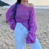 Womens Minimalist Crochet Knit Top Spring Shoulder Cutout Loose Fit Versatile Blouse