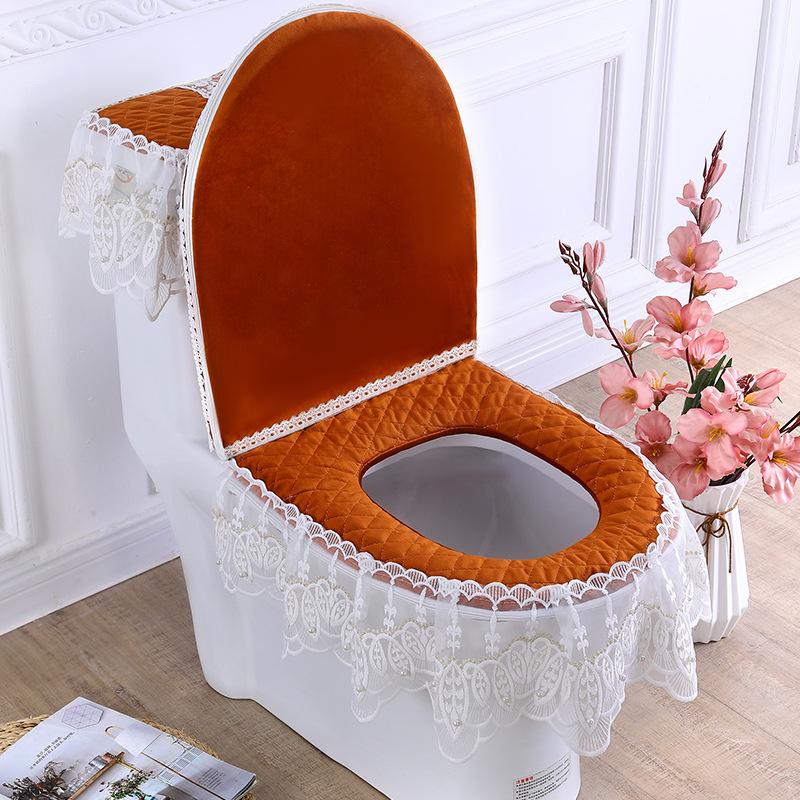 Lace Fabric Toilet Seat Cushion Set: 3-Piece Cover, Pad, and Ring.