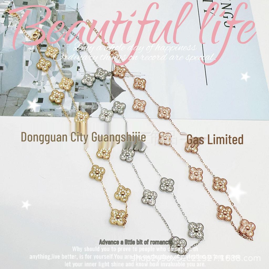 Luxury Stainless Steel Four-Leaf Clover Necklace with Full Diamond Finish - Non-Fading High-End Design