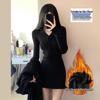 Introducing a chic and cozy addition to your autumn and winter wardrobe, this dress combines urban style with comfort. Made from high-quality cotton, it features a flattering V-neck design and hip-hugging silhouette. The knit fabric, enhanced with plus velvet, offers warmth and softness, making it perfect for cooler seasons. Whether you're heading to a casual outing or a night out, this dress ensures both comfort and style.