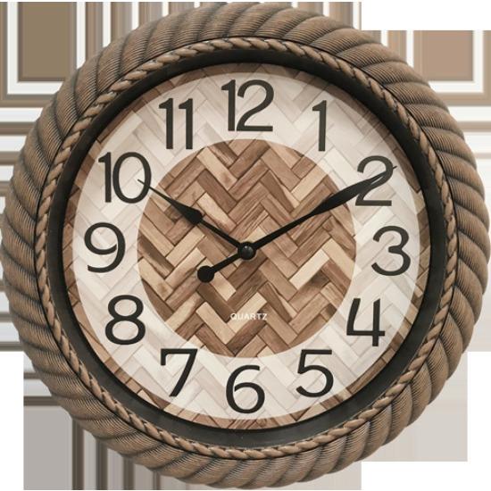 12-inch Imitation Woven Rattan Shell Roman Numeral Clock Face Retro Wall Clock European and American Retro Fashion Wall Clock Quartz Clock