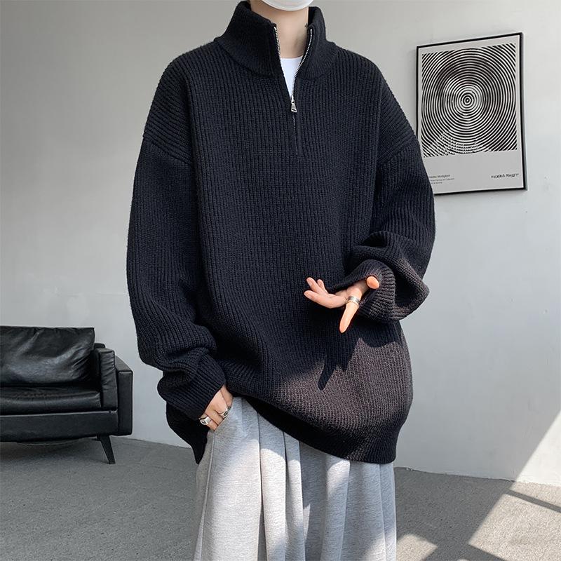 Men's Plus Size Casual Loose Knit Half-Zip High-Neck Pullover Sweater for Autumn and Winter
