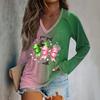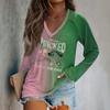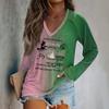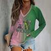 Women's Long Sleeve Plunger Sleeve Witch Printed Casual Top T-Shirt