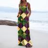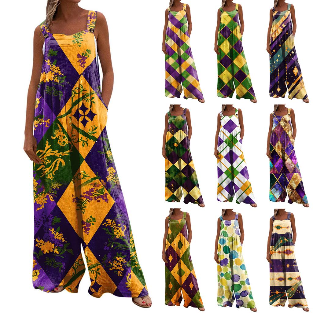 Wide Leg Overalls For Women Casual Loose Sleeveless Print Button Long Pant Romper Jumpsuit With Pockets