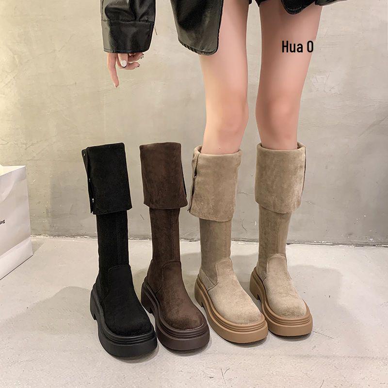 2025 Autumn/Winter Women's Chunky Heel Knee-High Foldable Boots