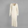 Women's New Solid Color Long Sleeve V-neck Slim Bodycon Knitted Maxi Dress Trendy Elegant Fashion Dresses