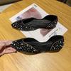 Step into elegance and comfort with these stunning women's flats. Featuring a sophisticated pointed toe design, these Mary Jane flats are adorned with chic bows, sparkling pearls, and dazzling rhinestones, adding a touch of glamour to any outfit. The footwear is crafted with durable polyurethane for both the upper and lining, ensuring a sleek look and lasting wear. The insole is also made of soft polyurethane, providing cushioned support for all-day comfort. Its sturdy rubber sole offers excellent grip and flexibility, making these flats a perfect blend of style and practicality for summer outings.