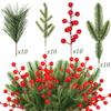 40Pcs Artificial Pine Needles Branches Greenery Faux Red Berry Picks Fake Flowers for DIY Wreath Xmas Embellishing Decorations