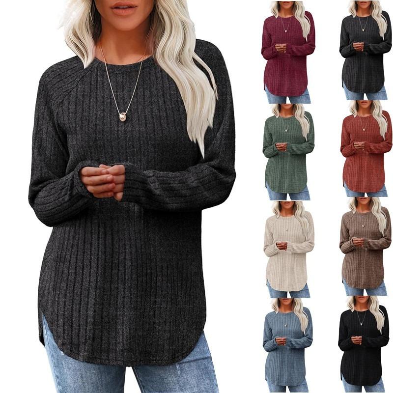 New Autumn Women's Loose Round Neck High and Low Curved Hem Tops for Women