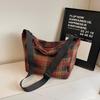 Retro Plaid Plush Shoulder Tote - Classic Large Capacity for College Students
