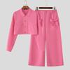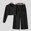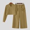 INCERUN Two Pieces Sets Men Lapel Neck Long Sleeve Cropped Shirt Bow Long Trousers Pants Outfits