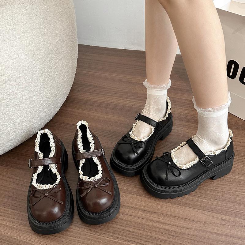 Thick-soled Heightened Light-mouth Sweet Bow Mary Jane Shoes Women's Spring 2025 Fashion Versatile Light-mouth Small Leather Shoes