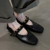 Sheepskin Version~ Genuine Leather Retro Hand-woven Flat-bottomed Shallow Mouth Single Shoes Women's Fashion New One-pedal Mary Jane Shoes