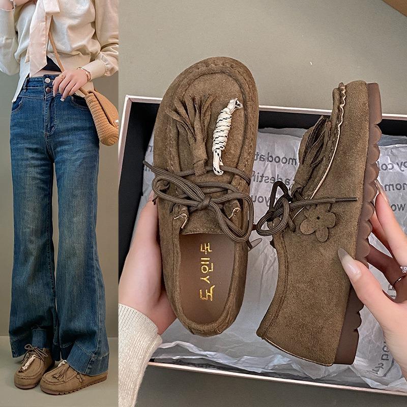 Retro Style Beaded Women's Autumn New Flat Bottom Shallow Mouth Lazy One Pedal Casual Single Shoes