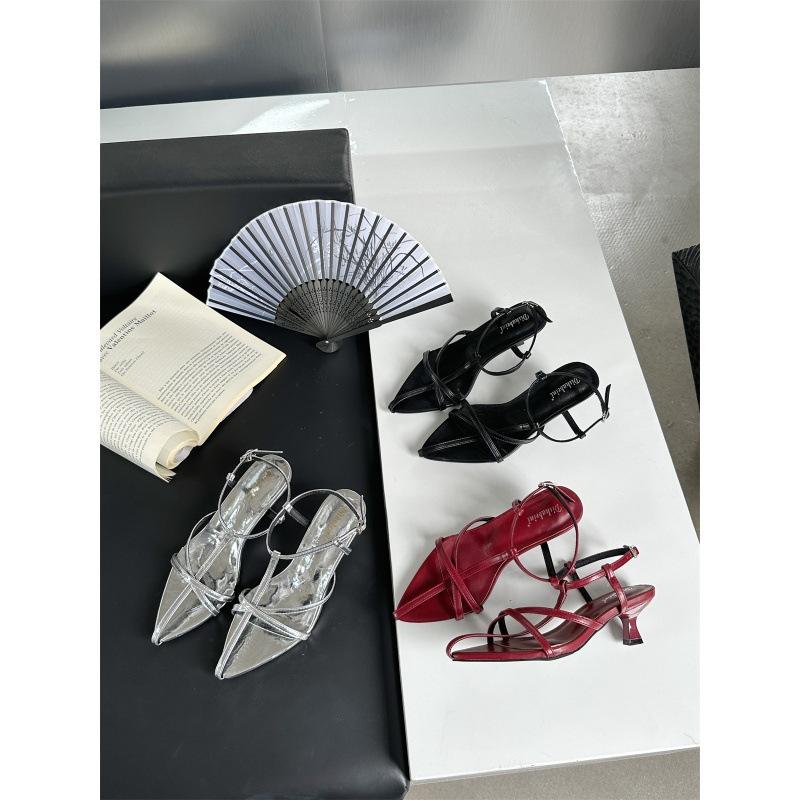 2025 Spring and Autumn New French Pointed One-word Buckle with Low-heeled Sandals Feminine Temperament Thin Belt Fairy Sandals