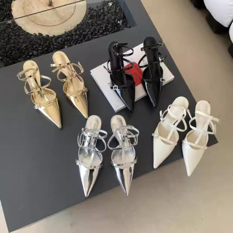 2025 Spring and Autumn New Fashion Minimalist Socialite Pointed Head Shallow Mouth Stiletto High Heels Women's Bag Head Empty Sandals