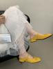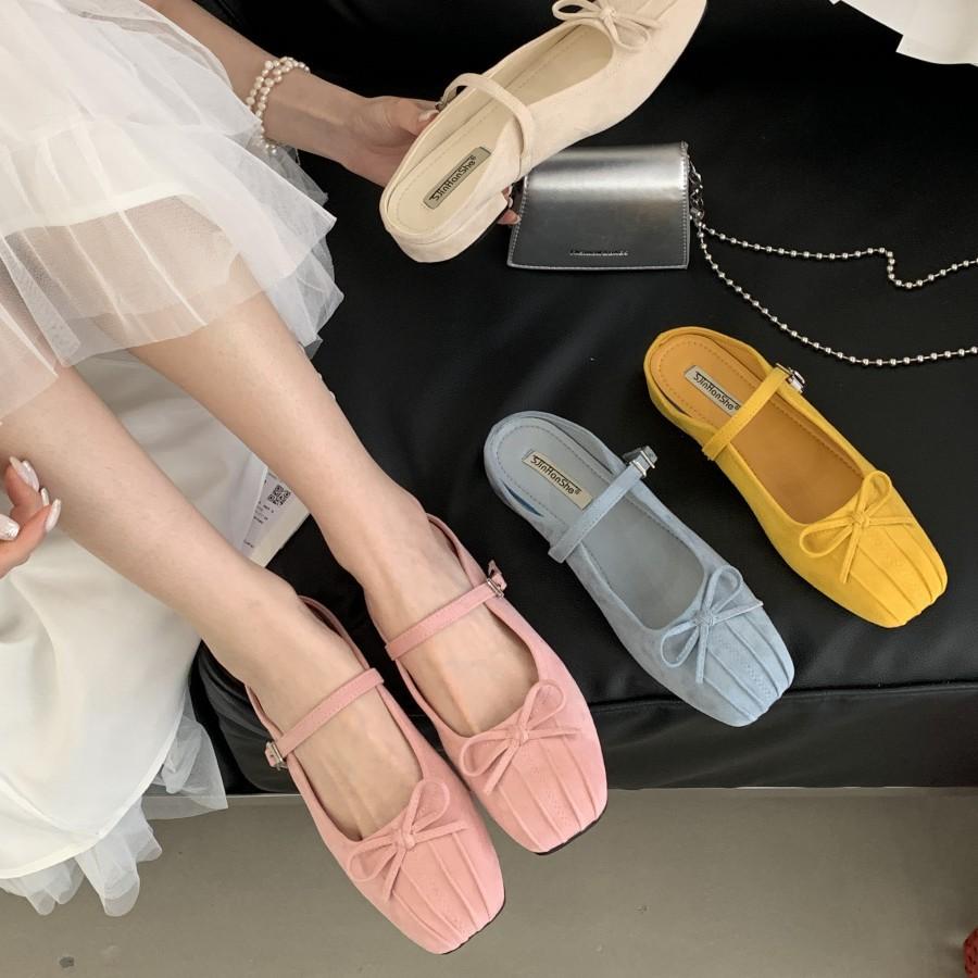 2025 Summer New Suede Bright Pleated Bow Square Head Soft Bottom Thick Heel Bag Head Slippers
