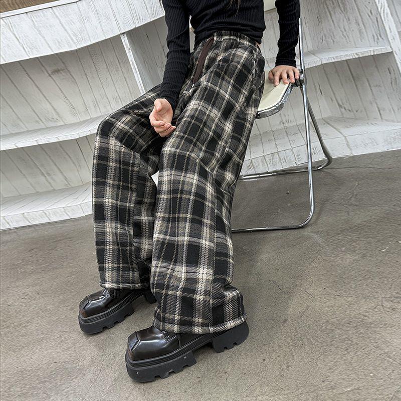 Crafted from durable EVA material, these stylish plaid wide-leg barrel pants are the perfect addition to any young girl's autumn and winter wardrobe. Designed to combine comfort with flair, these casual trousers feature a trendy plaid pattern and a roomy wide-leg fit, ensuring ease of movement. Ideal for playdates or family outings, they offer a versatile fashion staple that can be dressed up or down to suit any occasion.