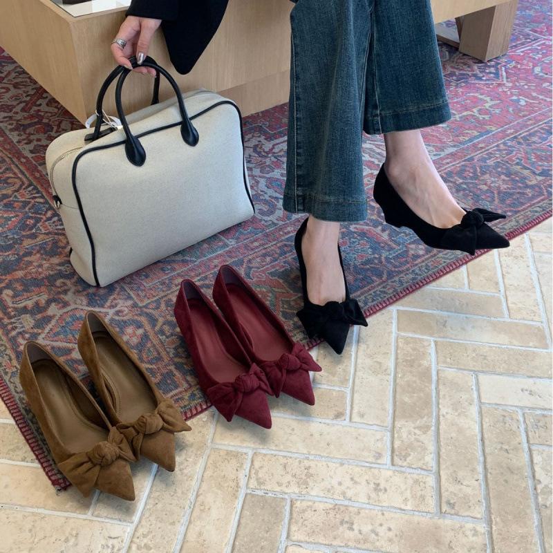 Fairy Style 2025 Autumn New Korean Version Niche Wedge Heel Light Mouth Bow Fashion Pointed Temperament Single Shoe Woman
