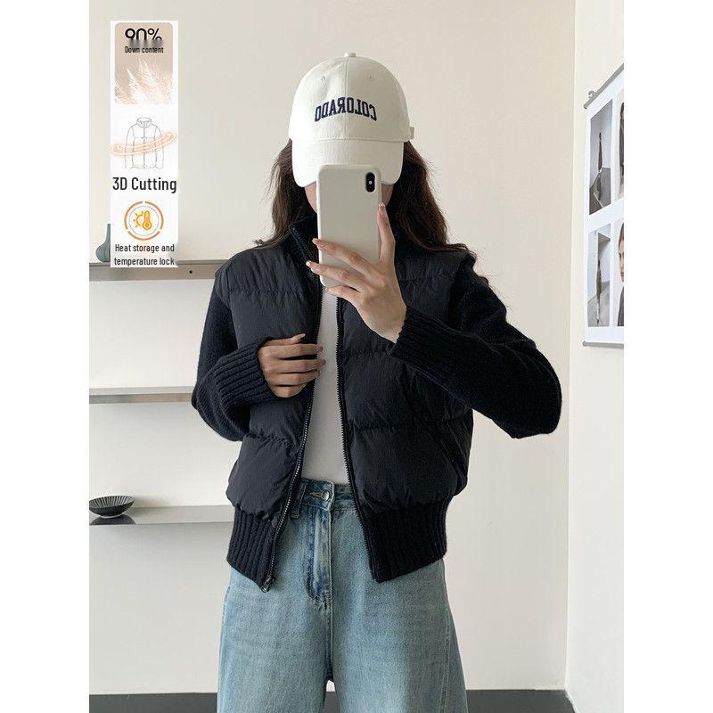 Introducing a stylish and cozy outerwear piece for the 2025 autumn/winter season. This petite short vest is crafted with 90% white duck down filling, ensuring warmth and insulation during chilly days. The knitted patchwork design offers a chic, Korean-inspired style, while the chenille fur adds a touch of luxury and softness. Made with spandex material, the vest provides a flattering slim fit and flexibility for ease of movement. The stand neckline enhances its modern look, making it a perfect addition to any wardrobe. Designed specifically for women, this vest seamlessly combines fashion and function for a comfortable yet trendy outfit choice.