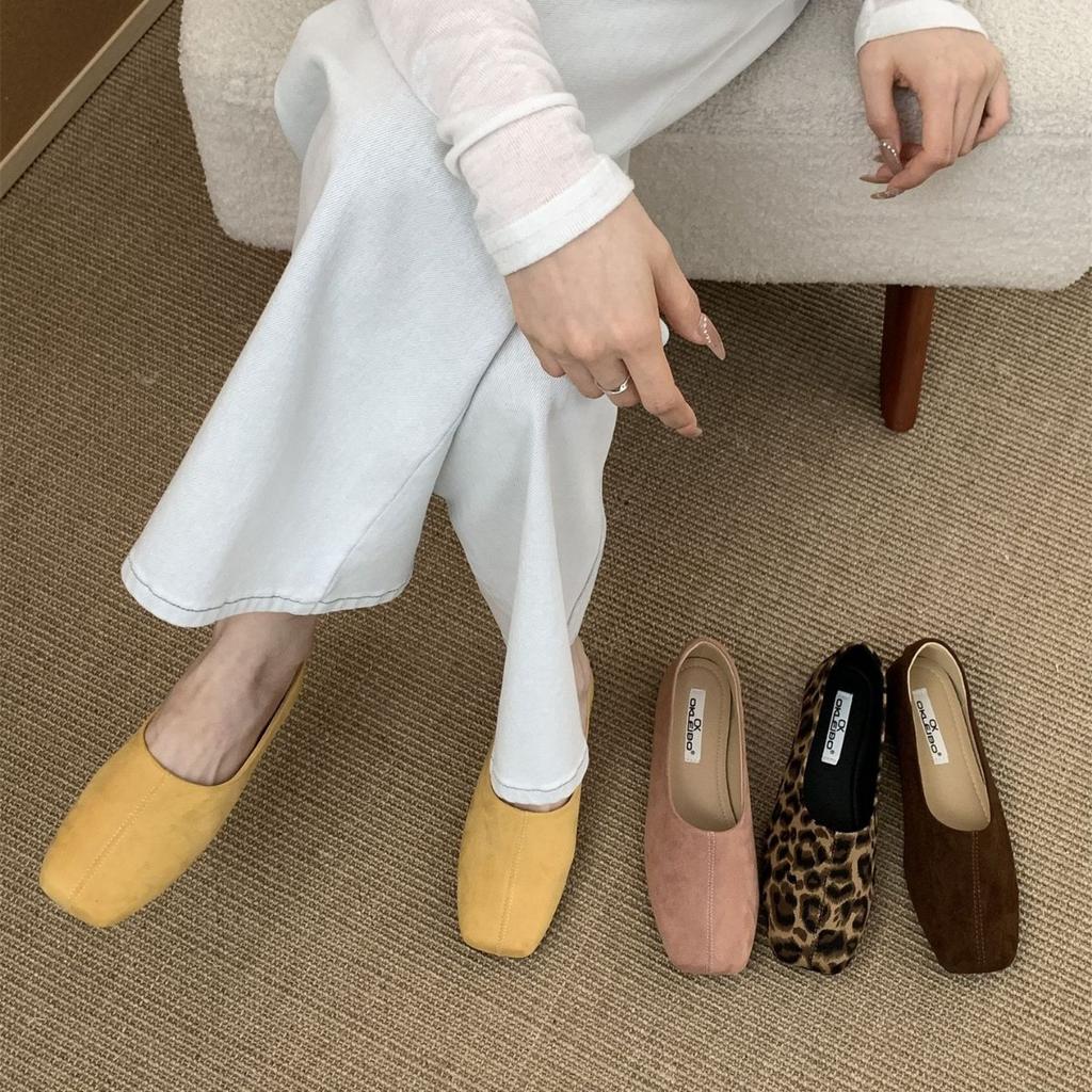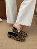 Square Head Single Shoes Women's 2025 New Soft Flat Bottom Comfortable Retro Simple One-pedal Korean Version Leopard Print Lazy Shoes Women