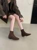 French Suede Square Ankle Boots Women's 2025 Autumn and Winter New Fashionable Thin Boots, Temperament Commuter Boots