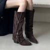 2025 New Korean Version Niche Design Retro French Thick Heel Pointed Western Boots Suede Medium Boots Women's Boots