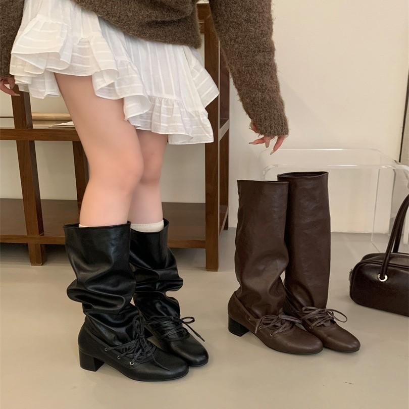 Thick Heel Boots Women's 2025 Autumn and Winter New Women's Boots But Knee Boots High Boots Round Head Western Knight Boots