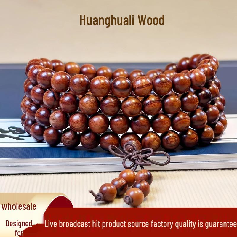 Large-Leaf Yellow Pear Wood Mala Bracelet with 108 Buddhist Beads, High-Density Kang Pear Rosewood for Women