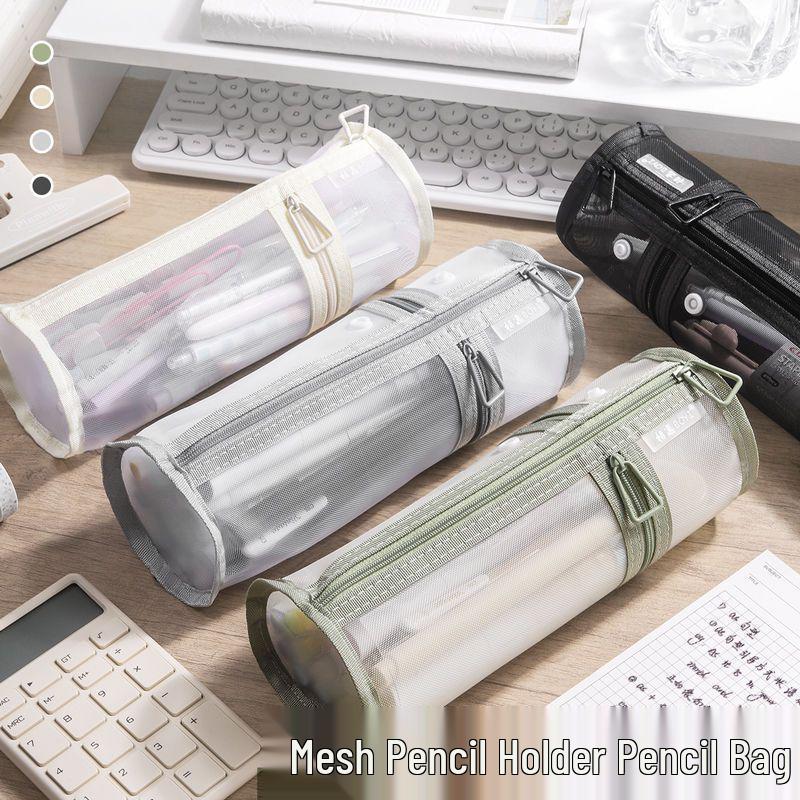 Dual-Use Transparent Mesh Pencil Case: Large Capacity, Detachable Holder for Students