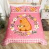 Cute Capybara Print Bedding Sets Full Kawaii Honey Bee Comforter Cover,Cartoon Animals Bed Set Red Love Heart Print Duvet Cover