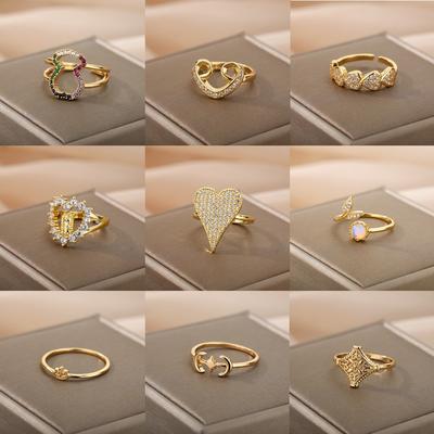 Light Luxury Niche Opening High Sense Fashion Zircon Ring Women'S Simple Adjustable Ring