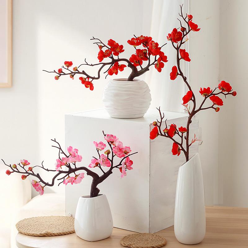 Artificial Plum & Peach Blossom Bonsai: Dried Flower Arrangement for Indoor Decoration
