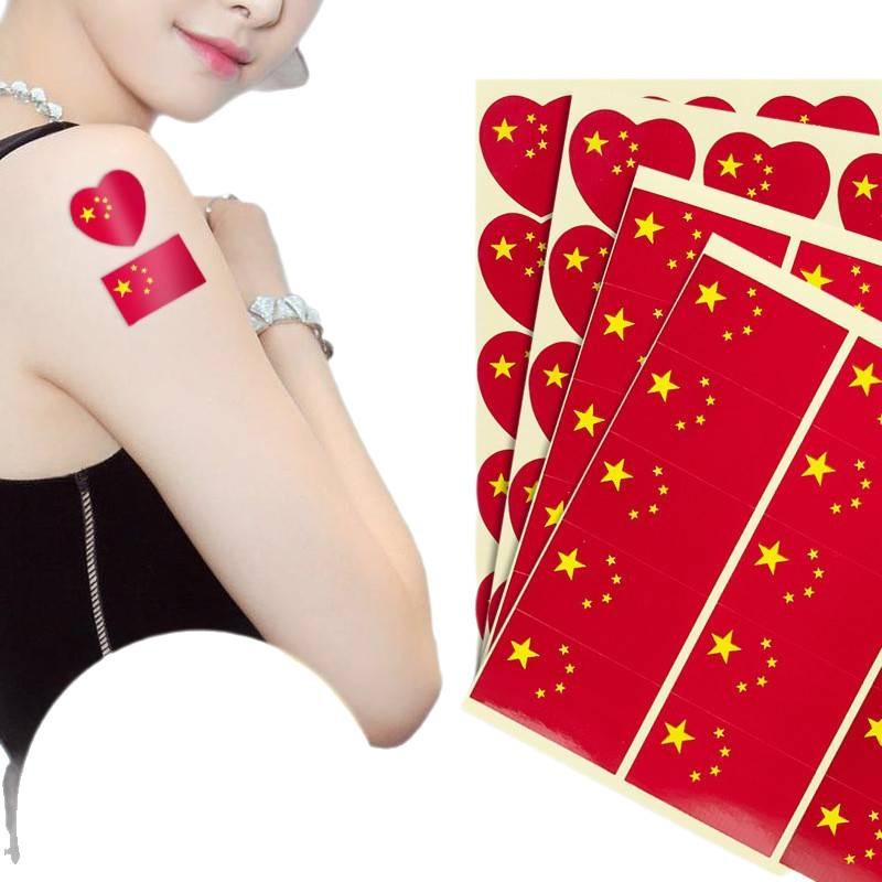 100-Piece Chinese National Day Face Stickers: Hearts & Red Flag Designs