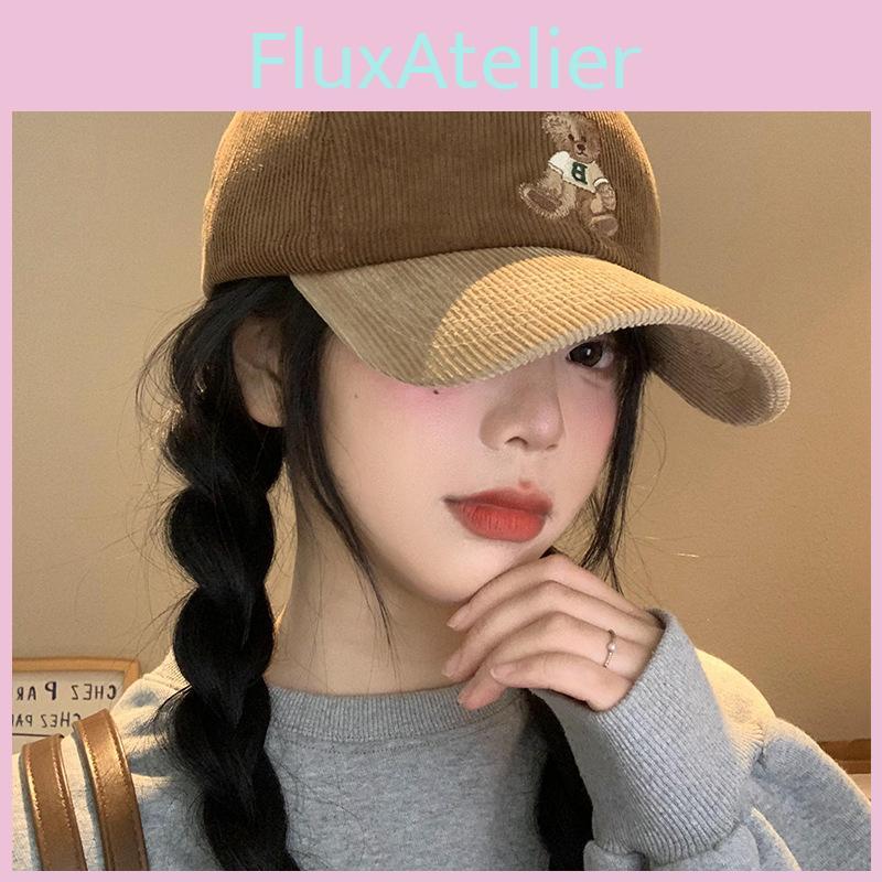 Corduroy Bear Cozy Embroidered Cap For Women In Stylish Colors For Winter Fall